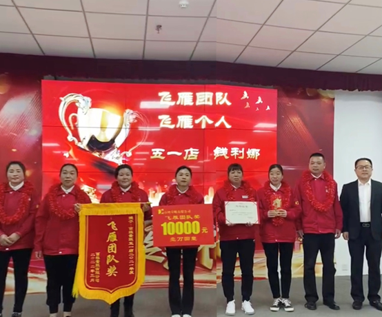 飛雁團(tuán)隊(duì)獎代表世龍店店長賈俊平做獲獎分享