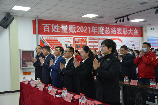 3月31日下午14:30,百姓量販2021年度總結(jié)表彰大會在公司四樓會議室順利召開。公司高管團(tuán)隊(duì)、受表彰的先進(jìn)單位代表、先進(jìn)個(gè)人共120余人參加了此次大會。